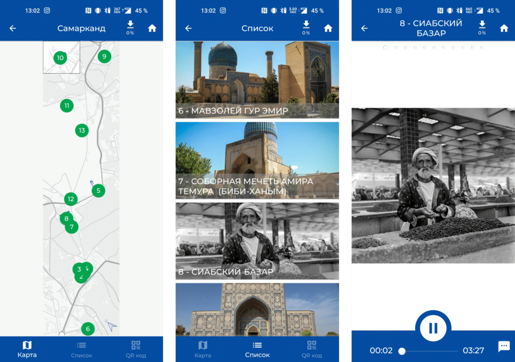 Уникальные исторические достопримечательности Узбекистана теперь доступны для вас благодаря инновационному цифровому аудиогиду Orpheo PWA. Окунитесь в удивительный мир эпохи Темуридов и Великого шелкового пути!